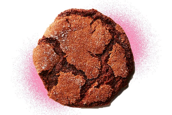 Roll into walnut-sized balls, then roll each ball in a shallow dish of sugar to coat. Place the balls a couple inches apart on a parchment-lined baking sheet (leave plenty of space as they’ll spread) and bake for 12 minutes, or until spread, cracked on top and slightly darker around the edge.