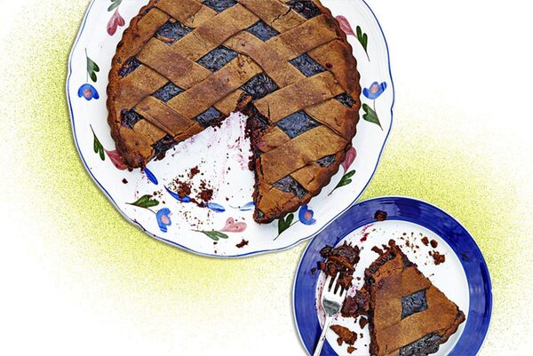 Recipe notes: This is the famous Newfoundland tart affectionately known as lassie tart. Assemble like linzer, rolling out the dough slightly thicker than you would for regular tart and pie doughs. You can make a filling by cooking together 1 cup red currant jelly with 3 cups cranberries and 1 cup water until the cranberries just pop, about 5 minutes over medium heat. Blueberry jam works well too.