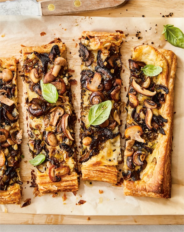 Spread the ricotta mixture evenly over the pastry, make sure to leave the border bare. Scatter half of the mushrooms over the ricotta. Lay the cheddar slices over the mushrooms. Gently combine the remaining mushrooms with the onions and scatter them over the cheese. Bake for 30 minutes, turning halfway through, until the cheese is bubbly and the crust is golden brown. Let cool for 10 minutes before serving. Serve warm with a side salad or bowl of soup.