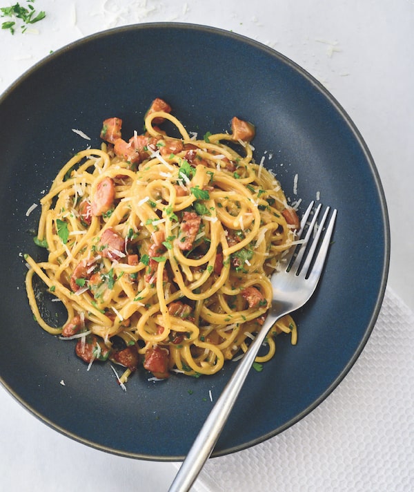 Bob Blumer's Creamy Carbonara with Double Pancetta, from his new cookbook Flavorbomb.Supplied