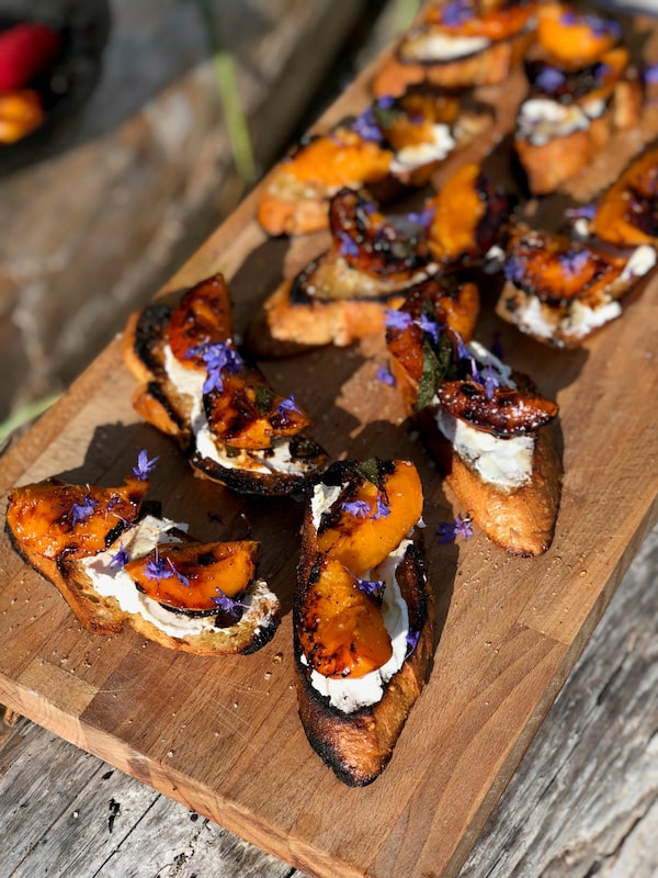 A great tartine should consist of around four ingredients. For me, burnt apricots, fresh goat cheese, black pepper and local honey is a current favourite combination. I whipped up a batch of these over an open fire a couple weeks ago and they were the stuff that summer food dreams are made of. At home, they can easily be cooked in a hot cast-iron pan on the stove or even on the barbecue.