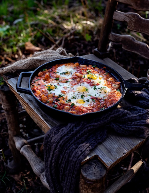 “I’ve given this classic dish a Middle Eastern twist by turning it into a shakshuka, which can be enjoyed for any meal of the day,” says Matys in her cookbook. “The velvety, runny yolks of the poached eggs complement the hearty and aromatic bean stew, making each bite a journey through the Mediterranean’s diverse flavours. With its bevy of ingredients, this dish not only is a beautiful addition to your table but also celebrates meaty, juicy tomatoes and showcases the magic of blending traditions and tastes from the eastern Mediterranean.”