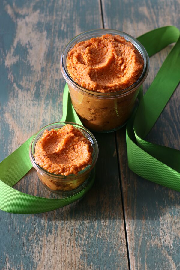 Pulse a generous 1/3 cup drained jarred pimentos (or a 4 1/2 ounce jar), 3 cups grated extra-old white cheddar and 1 cup old orange cheddar, 1/4 cup mayonnaise, 1/4 teaspoon salt and a pinch of cayenne in a food processor. Some recipes include about a teaspoon of grated onion, a shake of Worcestershire, and/or a small handful of pecans. Pack into jars or chill and shape into a ball and roll in finely chopped pecans to coat, and gift with crackers.