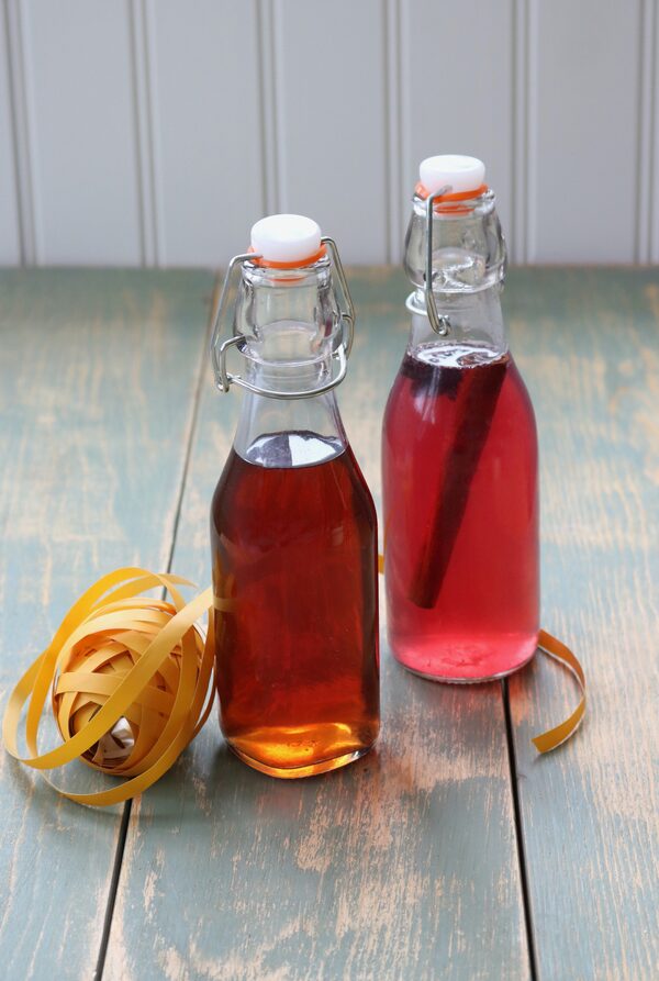 Raid your fridge, pantry or freezer and tuck chopped fresh or frozen rhubarb, sour cherries, quince, plums, cranberries or other fruit into clean bottles of any size – or try strips of citrus zest and warm spices, like cinnamon sticks, whole allspice and star anise. Add a few spoonfuls of sugar, top up the bottle with gin, close and tip the bottle once in a while for a few days to help the sugar dissolve. It will get better the longer it sits. You can gift it with the aromatics still in the gin, or strain as you decant a larger batch into smaller bottles.