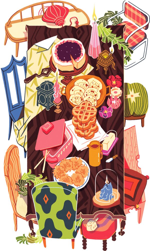 Every Christmas morning, Greg Fraser and Darcy Lundgren open their gifts, then mix up a batch of waffles based on a recipe from an old, well-splattered Five Roses Cookbook. Fraser’s mom usually joins them in the morning for waffles topped with butter and maple syrup, and a side of eggs and bacon, and they enjoy breakfast in their art-filled Calgary loft, which doubles as showroom and design studio. Later in the day they head out to her house, an old converted church in Trochu, a small town in central Alberta, for a more elaborate dinner with family and friends – up to 52 guests pre-pandemic.