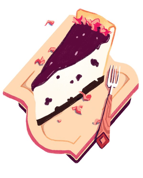 Mariam Munawar’s Rosewater and Wild Blueberry Cheesecake on a Chocolate Biscuit
