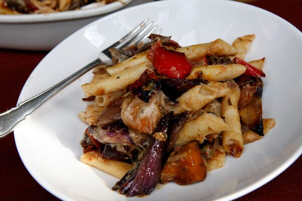This vegetarian pasta is a good base for whatever vegetables you like. Try broccoli, cauliflower, eggplant, kale or anything else you might have in your vegetable drawer. If you like smoky flavours, smoked provolone cheese will lend a more complex taste.