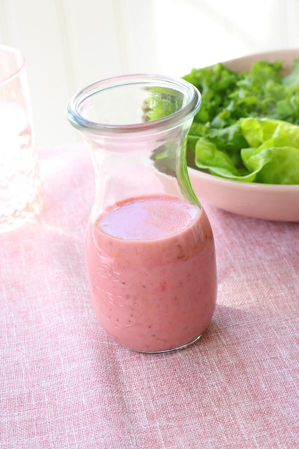 Soft stewed rhubarb makes a wonderfully pink vinaigrette, the fibre adding body to the dressing and helping it emulsify. You can simmer a single stalk with a bit of water just for this purpose, or dip into a batch you already have hanging out in the fridge.