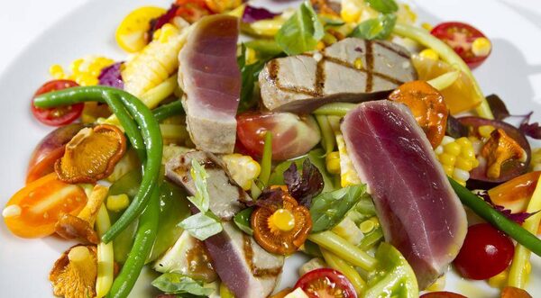 Keith Froggett’s grilled yellowfin tuna with sweet corn, chanterelles and tomatoesPeter Power/The Globe and Mail