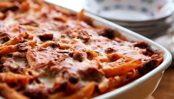 Cheesy baked pasta with mushrooms and sausage is a delicious and nutritious way to cap off a day on the slopes.DAVE CHAN