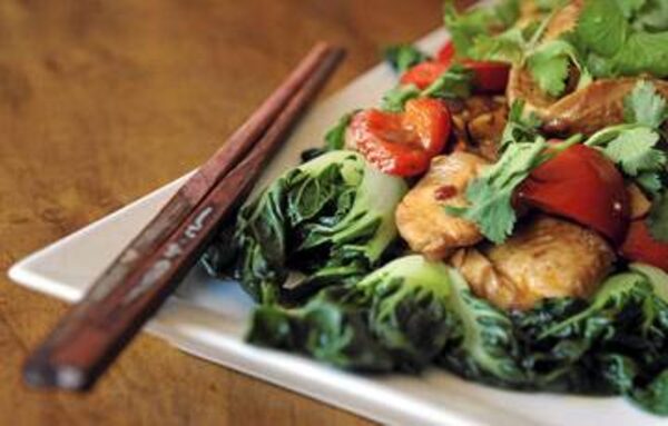 Use a medium curry paste for this Malaysian recipe as it best balances the sweetness of the hoisin sauce. Mix the steamed bok choy into the dish or surround the dish with it.