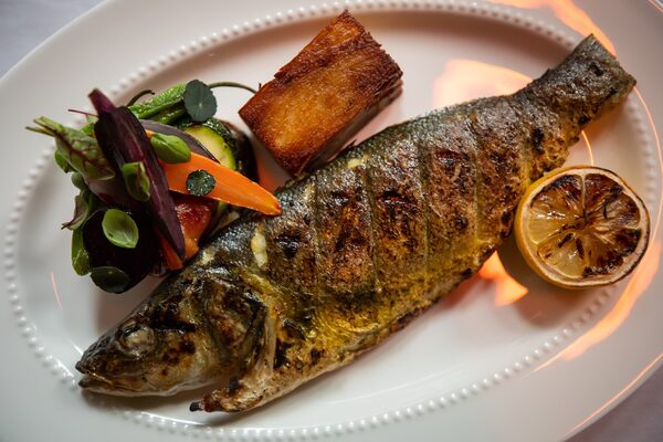 Mediterranean branzino was served whole, darkly charred and filled with lemons, walnuts and olives.DARRYL DYCK/The Globe and Mail