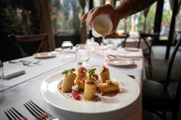 Pasta alla Norma was elevated from chunky eggplant ragu into stuffed paccheri, dressed tableside with a salted ricotta cream punched up with parmesan, pecorino and shavings of Middle Eastern jameed.DARRYL DYCK/The Globe and Mail