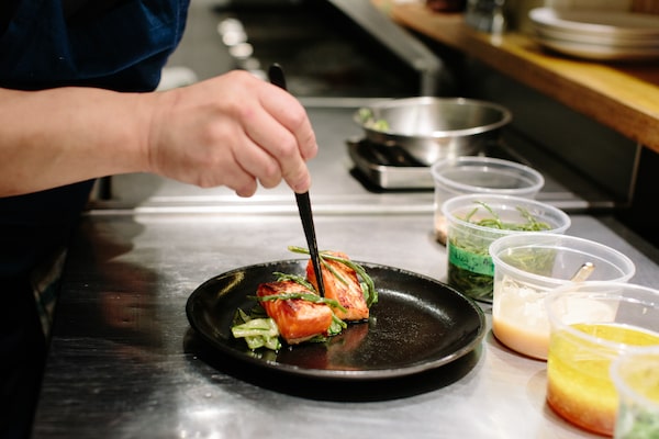 PiDGiN executive chef Wesley Young prepares ocean-farmed king salmon from New Zealand in the Vancouver restaurant on July 7, 2020.Jackie Dives/The Globe and Mail