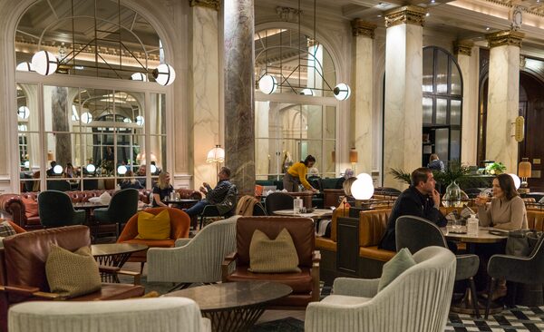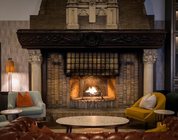 After extensive renovations, the hotel’s new concept, the Hawthorn Dining Room and Bar, made its debut earlier this year. The new space is striking from its zig-zag black-and-white floor tiles to warm, rust-colour banquettes and U-shaped bar that spills out into the main lobby. The dining room isn’t all new as two of its most famous design accents – the grand fireplace and the colourful Alberta Foothills mural – remain. The latter of the two seems to serve as colour inspiration for the entire space and is a thoughtful historical nod.