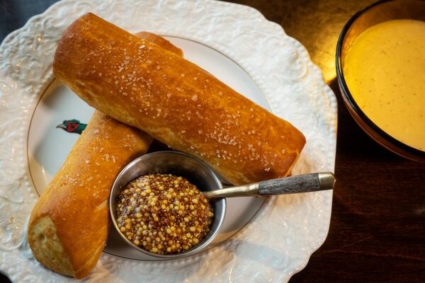 Lorenz’s soft pretzels are served with a warm beer cheese and slightly sweet grainy mustard.Todd Korol/The Globe and Mail