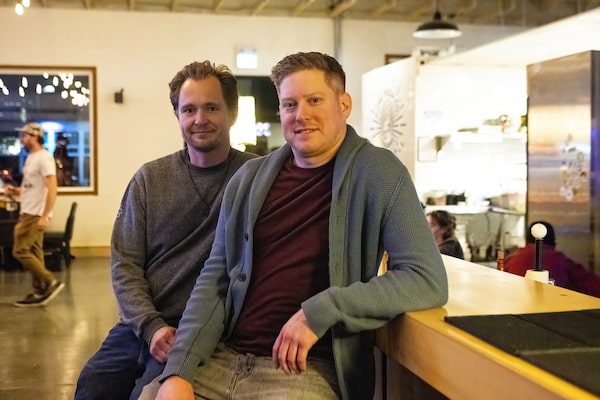 Managers Jonathan Klein (left) and Ty Hinton sit at the bar of Two House Brewing.Gavin John/The Globe and Mail