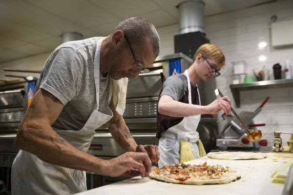 Chefs Chris Collins (left) and Scott Bouchard make thin-crust pizzas.Gavin John/The Globe and Mail