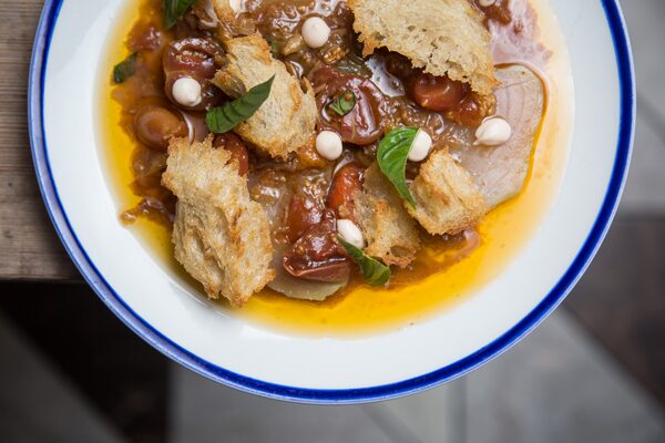 Was the seared ling cod a little salty? Yes. The brown-butter dashi and aged kimchi choy were bold enough on their own. Could the skin on a deeply smoky, twice-cooked half chicken been a bit crispier? Sure. But then the fat might not have rendered so perfectly and the sticky texture of the spruce-vinegar honey glaze would have been lost. Was it surprising to discover that charred asparagus with gooey stracciatella cheese was served cold? Uh huh. But it worked so well with a soft-cured egg brined in dark beer.