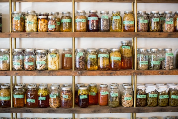 Wooden shelves groan under the weight of mason jars filled with pickled sea asparagus, dried chanterelles, sorrel vinegar and much more.BEN NELMS/The Globe and Mail