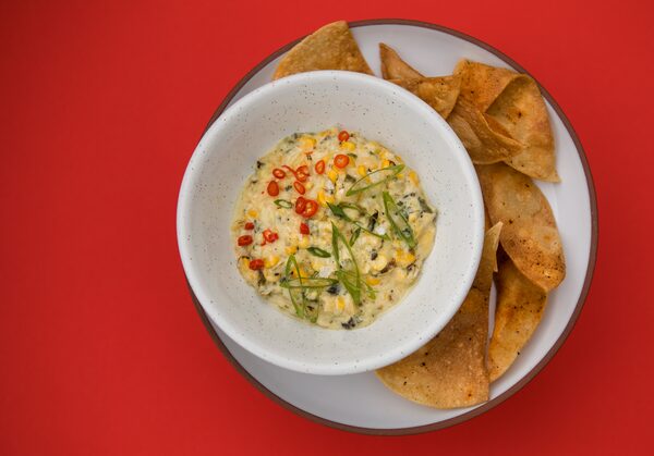 Chef Brian Skinner's sweet corn queso: charred poblano peppers with house-made chile lime chips.Lucas Oleniuk/digitial
