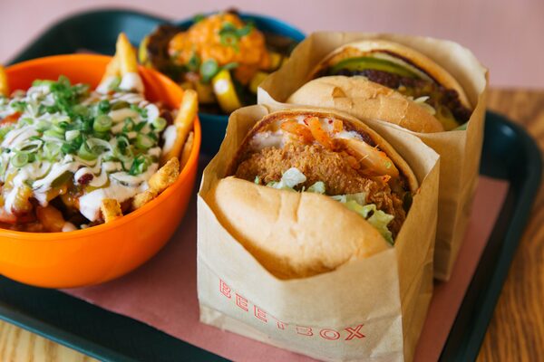 The wholly vegan comfort menu at Beetbox is much more complicated. The chin-drippy burgers and crunchy chick-un sandwiches served with chili-cheeze fries, nut-milk shakes and healthy-ish salads are not dishes you could easily replicate at home.