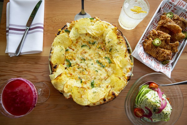 Sweet and savoury fried chicken, wedge salad and sweet corn pizza with gin cocktails at JINBAR.Todd Korol/The Globe and Mail