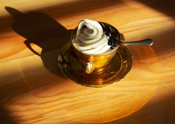Soft serve ice cream is served in a vintage tea cup and studded with warm brown sugar tapioca pearls.Todd Korol/The Globe and Mail