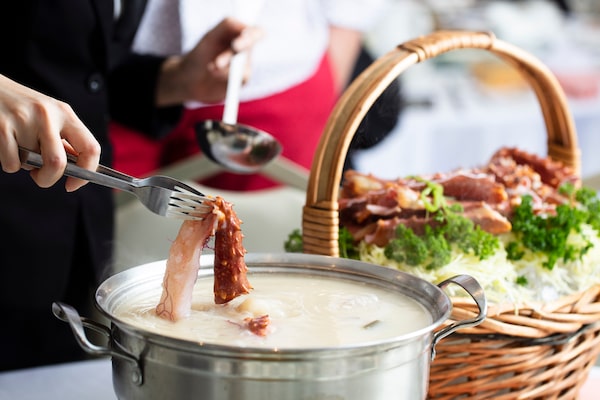 Basket of trimmed Alaskan king crab legs presented for table side poaching in seaweed broth at New Fishport Seafood Bistro in Vancouver, on Feb. 25, 2020.Rafal Gerszak/The Globe and Mail