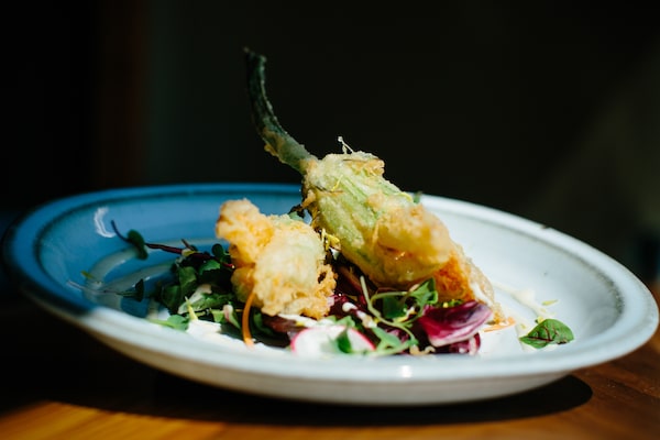 Although transformative, the innovative kitchen dishes are anchored in serious technique. Chilliwack corn purée, for instance, is mixed with sesame paste and arrowroot powder then lightly deep-fried to a wobbly texture that looks like agedashi tofu, but has sweetness, custardy heft and a dark-yellow cornbread hue.
