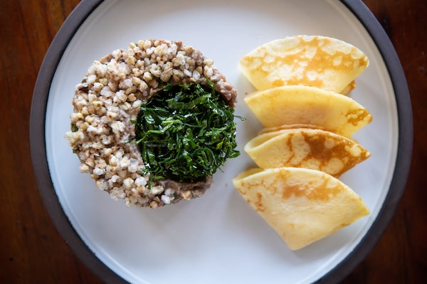 Beef tartare with sour pancakes.DARRYL DYCK/The Globe and Mail