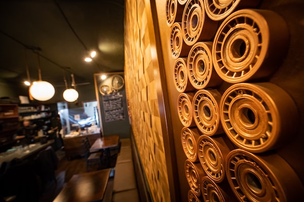 The restaurant's interior is dark, cozy and burnished in gilded scrap metal.DARRYL DYCK/The Globe and Mail
