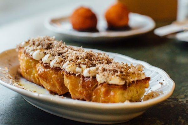 Andrew Han is best known for his whimsical Asian pastries, many inspired by his memories of growing up in Chinatown. But it was his electrifying mortadella sandwich, named in homage to the neighbourhood’s enduring Benny’s Market, that tapped my own Italian-heritage nostalgia and jolted it with a minty, lemongrass salsa verde twist. The thinly sliced meat is marinated in black-tea soy dashi, squished between a black sesame sourdough baguette, smeared with kimchi, swiped with Kewpie mayonnaise and finished with a glorious slice of melted Gouda cheese.