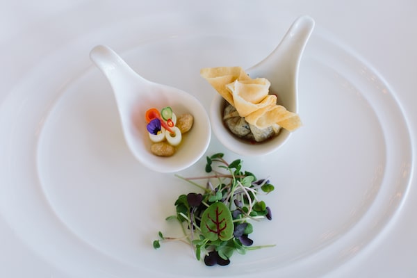 I certainly didn’t love all the dishes at this formal, staggeringly expensive, Michelin-star-seeking Thai restaurant on the Steveston waterfront. Perhaps that’s because the rest paled in comparison with this dazzling, diminutive appetizer – more of an amuse bouche, quite frankly. Lilliputian morels of fresh green papaya were carved into cylinders, tossed in zesty lime dressing, adorned with an itsy-bitsy bouquet of edible flowers, cucumber and bird’s eye chili appliquéd with tweezers. It was set on a spoon in a thimble of tomato water that exploded with a pinpoint balance of sweet, salty, spicy and sour notes. It was an unforgettable bite, but a hard act to follow.