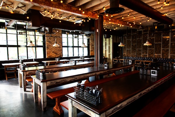 The long thick wood-plank tables result in small groups of people mingling and chatting when it gets busy.Todd Korol