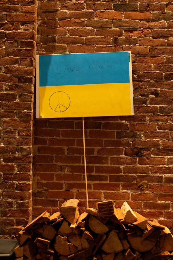 But the fighting spirit is strong. A Ukrainian flag is festooned across the open kitchen, a fundraising jar for humanitarian aid sits on the bar, filled to the rim. And in the men’s bathroom, a photo of Russian President Vladimir Putin is strategically positioned next to the drain of a urinal basin.