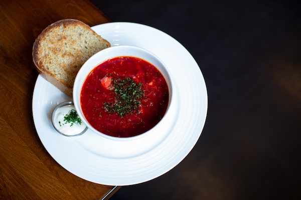 Top: Borscht served with bread. Bottom: Executive chef Alex Orlenko learned to make his perogies as thin and silky as fine tortellini.Jackie Dives/The Globe and Mail
