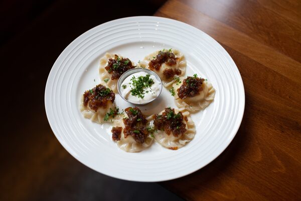 And the perogies, wow, you could make an entire meal out of the perogies with their medley of flavours – from vibrant dill-and-potato to savoury sour cherry – all deftly pleated, firmly packed and fried to a perfect, non-greasy crisp or boiled to a satiny finish and garnished with caramelized onions sautéed to the precise sweet spot before they burn or tip into candy.
