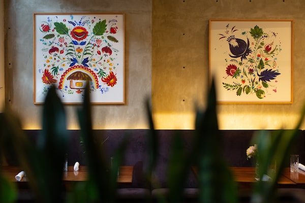 Colourful Ukrainian folk art lines the walls at Kozak.Jackie Dives/The Globe and Mail