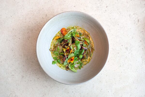 Charred octopus with sunchokes, jalapeno and Leche de Tigre at Botanist
