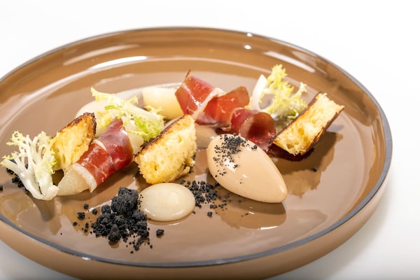 There have been some big changes at Whistler’s legendary Bearfoot Bistro: founder André Saint-Jacques left during the pandemic. But one crucial component remains the same: executive chef Melissa Craig (Mr. Saint-Jacques’s partner) is still cooking sublimely. After two recent visits, I would actually say that she is cooking at the top of her game. Ms. Craig has always had a special touch with layering flavours and building textures. Her exquisite Quebec foie gras parfait is a striking example. The buttery duck liver is amplified and invigorated by satiny ribbons of melt-in-the-mouth duck prosciutto that was cured with a strong kick of fennel in the restaurant’s wine cellar. Pear compote adds a touch of sweetness. A cocoa-and-bergamot crumble ties it all together with colour-blocking elegance and crunch.