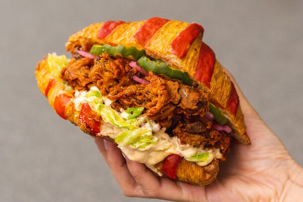 The fried chicken crois-sando at Downlow Chicken Shack and Beaucoup Bakery & Café