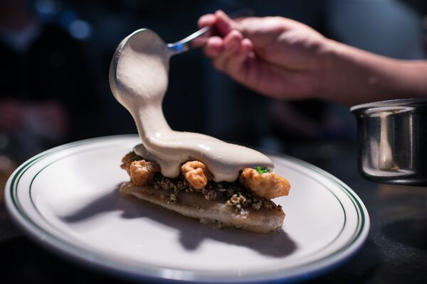 Coquille’s fancy petrale sole comes lightly pan-fried, stuffed with buttery duxelles and luxuriating in a thick, foamy bath of white chicken blanquette. It’s velvety, rich and classic French.BEN NELMS/The Globe and Mail