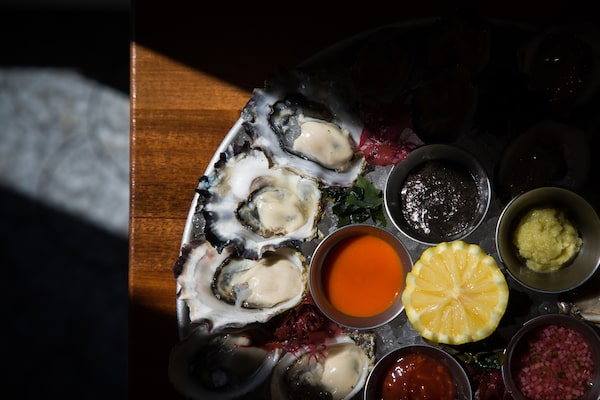 A selection of raw oysters and scallops are pictured at Coquille.BEN NELMS/The Globe and Mail