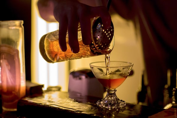 Bartender David Back makes a Red Hook cocktail at Trans Am restaurant in Vancouver, B.C., on Jan. 22, 2018.BEN NELMS/The Globe & Mail
