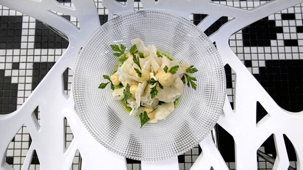 Salad of chicken and lightly pickled cauliflower is served at L'Abbatoir