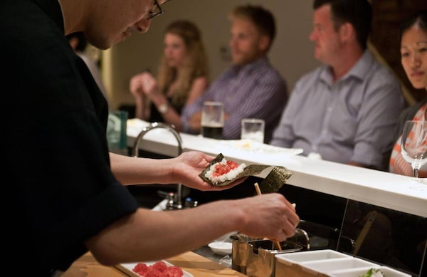Mr. Ouchi, who is 40, began his sushi training in Osaka when he turned 16, he said. He spent the first five years of his thirties in Australia, much of that time at modernist sushi king Nobu Matsuhisa's Melbourne branch. He came to Toronto in 2009 and opened a takeout counter in Leaside called Nigiri-Ya.