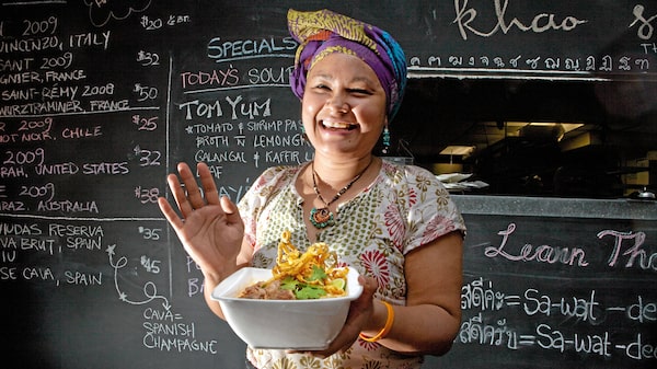 Thai Chef Nuit Regular displays the khaosoi beef dish she made at Khao San Road restaurantJENNIFER ROBERTS For The Globe and Mail