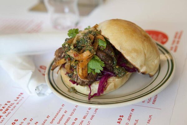 And the cooking – short ribs braised in Coca-Cola and beef stock, slathered with guava barbecue sauce; pork belly glazed with pineapple; superb medianoche sandwiches; a dangerously tasty house hot sauce – will likely impress anyone who's enamoured of well-made Caribbean food. (It is executed by chef de cuisine Leah Marshall Hannon, an alumna from Delux.)