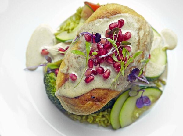 Her chiles en nogada, a national dish in Mexico that's often eaten in the fall, is also a must-order. Like so many of the country's greatest dishes, this one is both simple, and remarkably complex. Ms. Herrera follows her grandmother's recipe, with more than 30 ingredients in the stuffing alone, she said. There's ground pork, prunes, apricot, green apples, cinnamon, olives, capers, almonds, pine nuts, plaintains … That filling is stuffed into whole poblano peppers, which are charred and then floured and dipped in egg whites and shallow-fried; the peppers comes napped with a creamy walnut sauce and pomegranate seeds. This is cooking with depth and personality. If all you know of Mexican food is Baja-style tacos and chicken chimichangas, the best of Ms. Herrera's dishes will alter your conceptions for good.